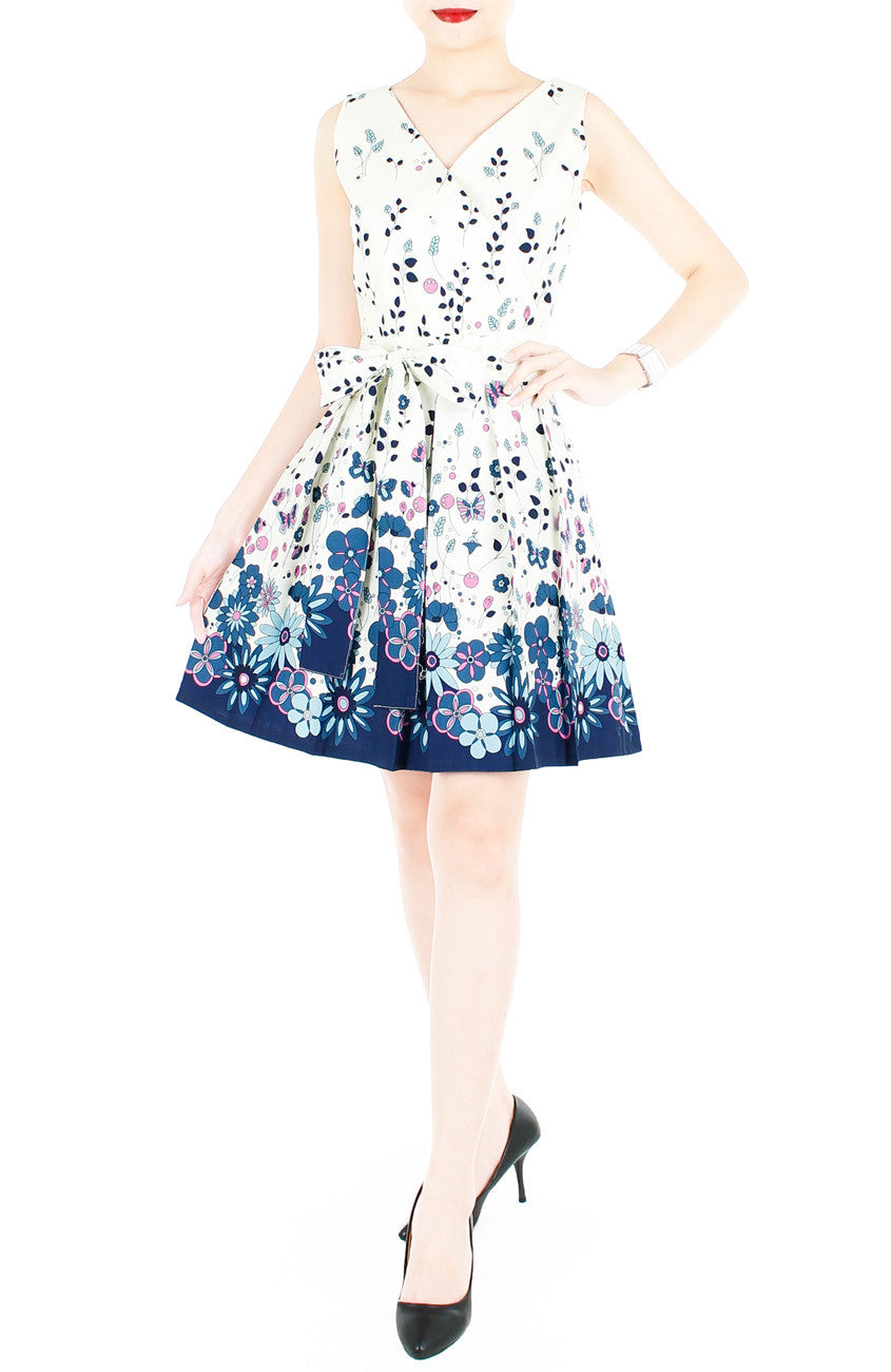 Dancing Fleur & Vines Wrap Dress with Belt - Blue