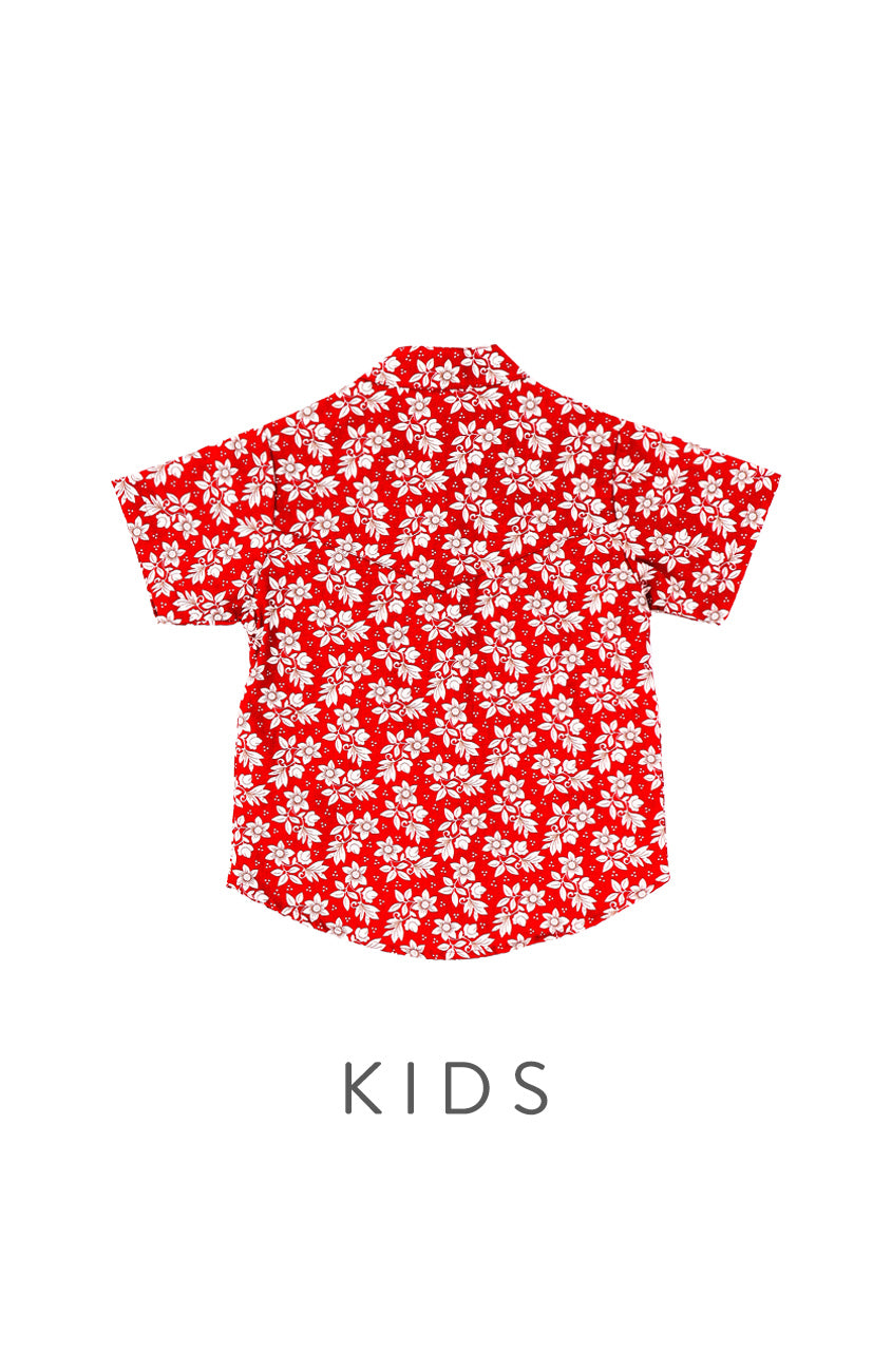 BOYS Auspicious Flowers at Dawn Mandarin Collar Shirt