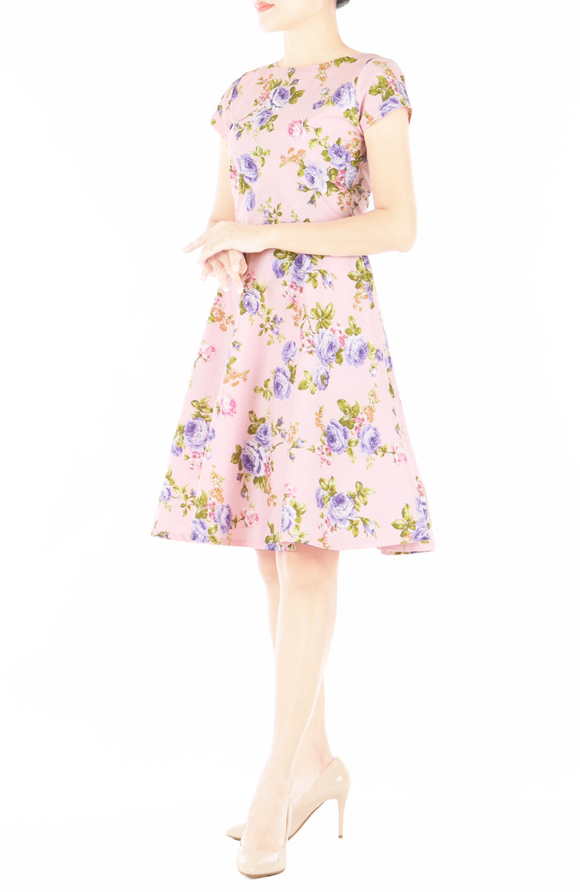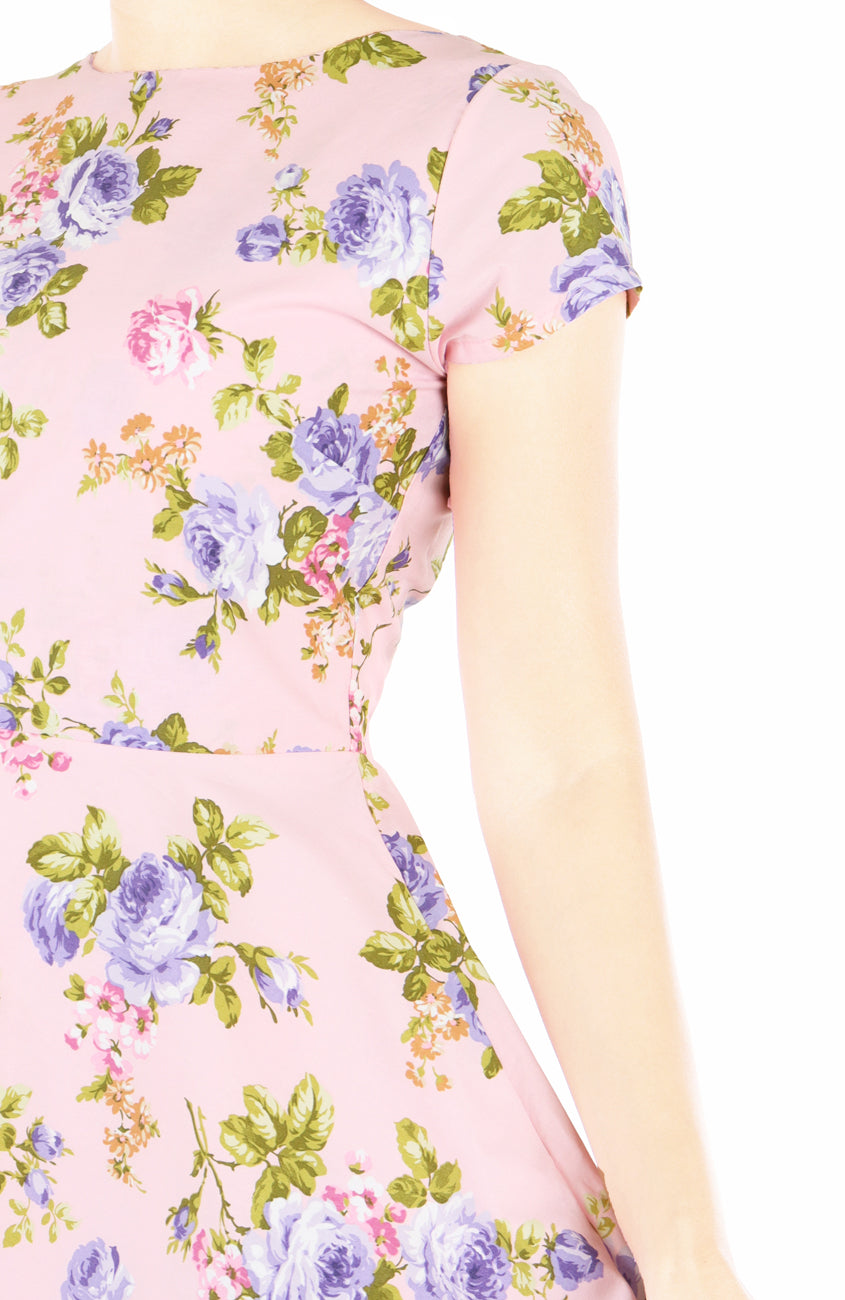 Covered in the prettiest lilac and pink vintage roses, this fit-and-flare dress is sure to become your quick favourite in your wardrobe! Its combination of ultra-romantic print and 50s silhouette makes her the ideal choice for special occasions for tea parties!