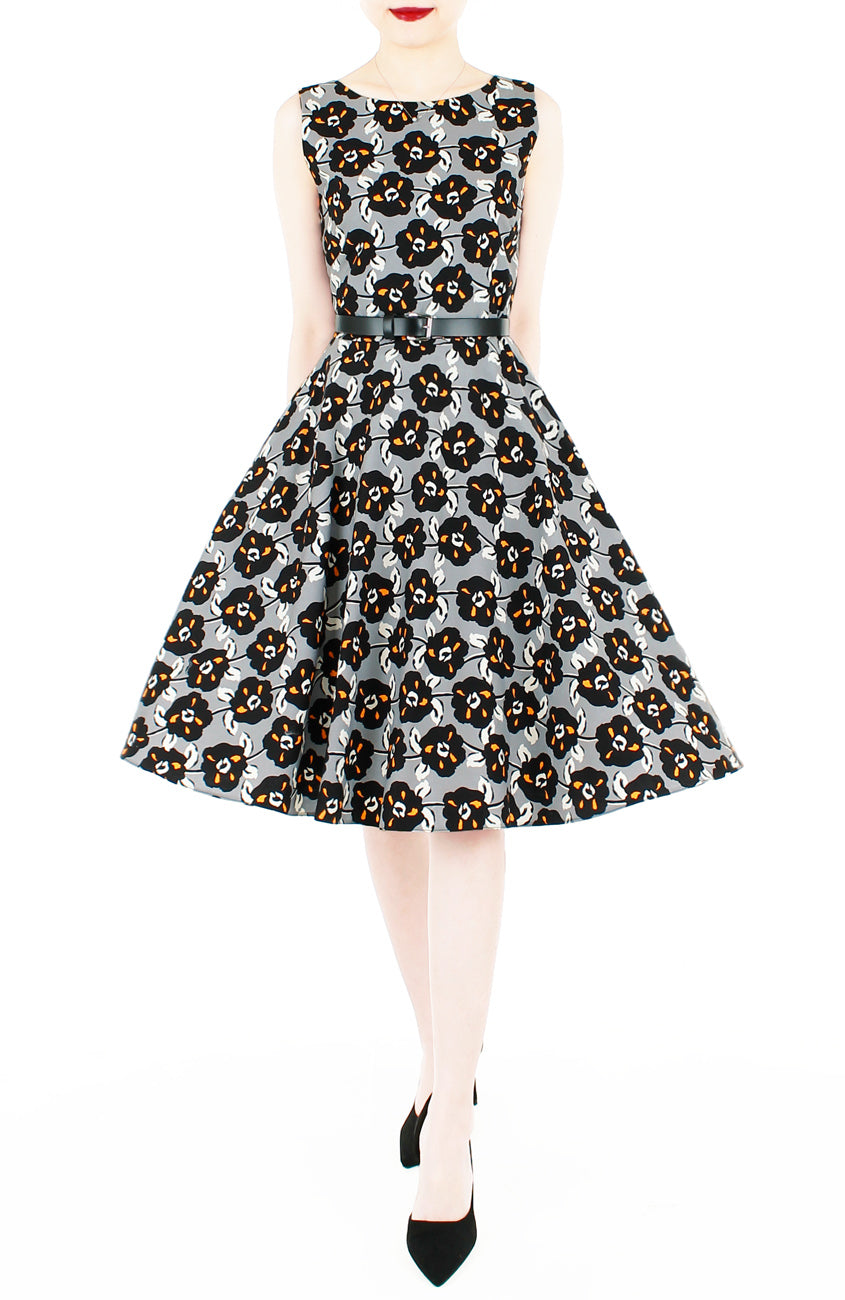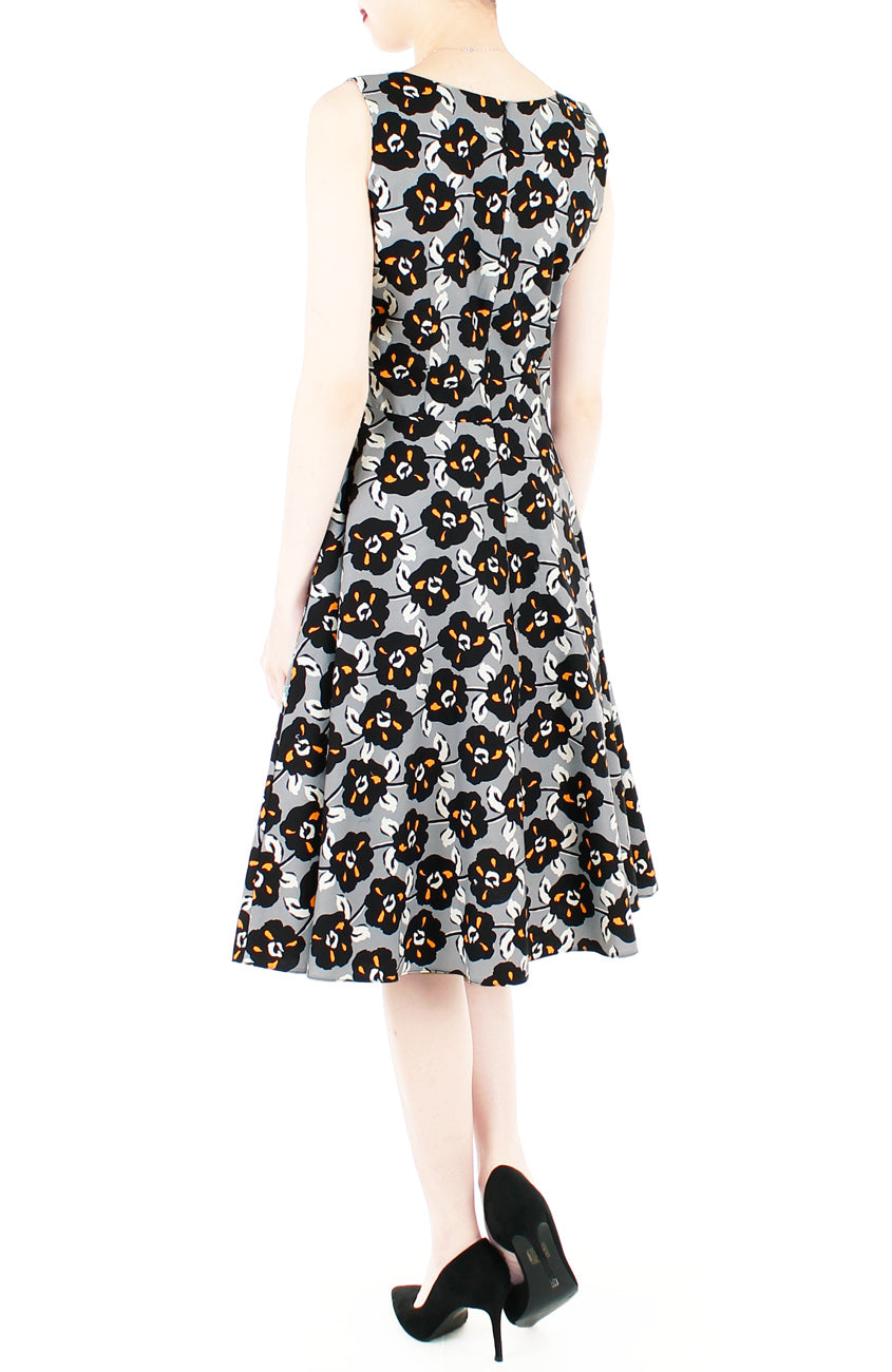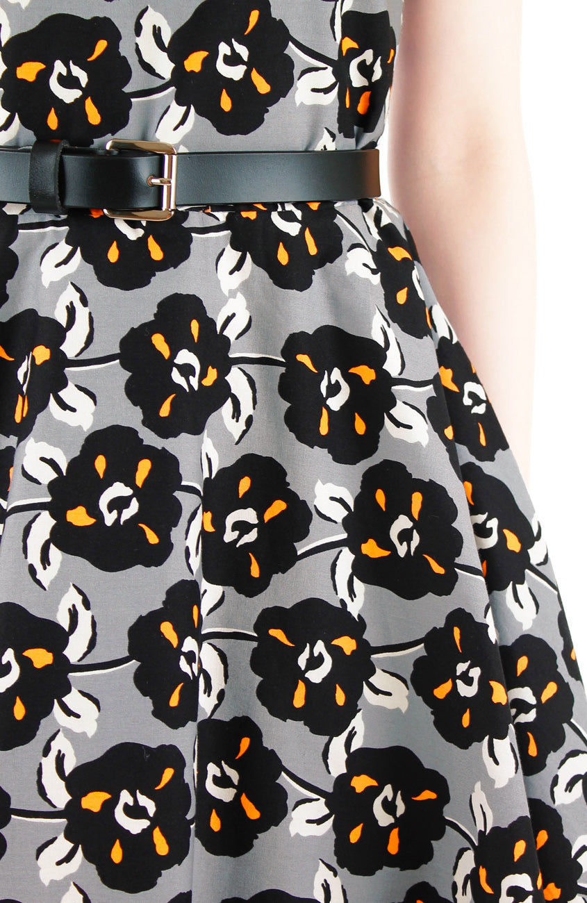 As trends and fads roll on by, your appreciation for this gray dress with black and orange florals remains as steadfast as ever. Details include: Double layered top, flare skirt with inner lining, side pockets and a concealed back zip. Made from cotton.