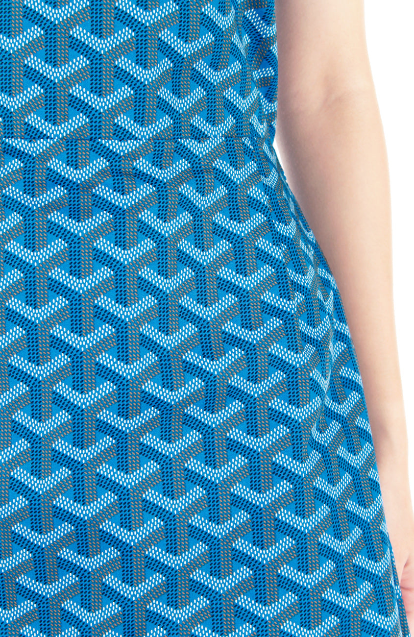 In the mood for a throwback? This A-line dress delivers on that desire with a its eye-catching chevron pattern of blue, white, brown and black, cascading throughout its dress. Now, that’s how you achieve vintage-inspired elation! Details include: Double layered top, A-line skirt with inner polyester lining, side pockets, notched neckline and a concealed back zip. Made from cotton – breathable & machine washable (no colour bleed). Hand wash for initial wash.