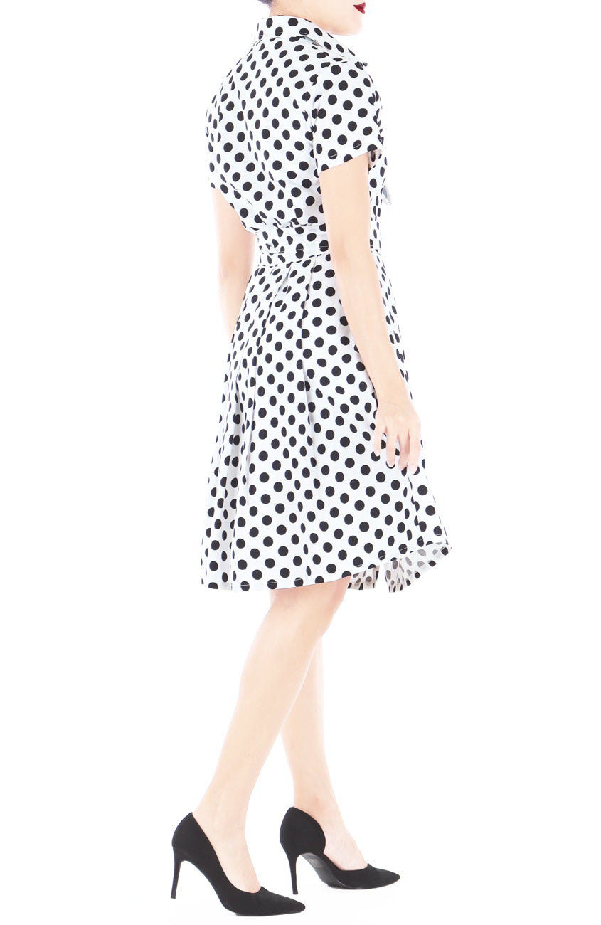 Pleated skirts are lovely and polka dots are divine, combined together, it’s nothing but magic, everytime! This retro ensemble in white with black dots features secret pockets, a matching waist sash and a look that welcomes admiration!