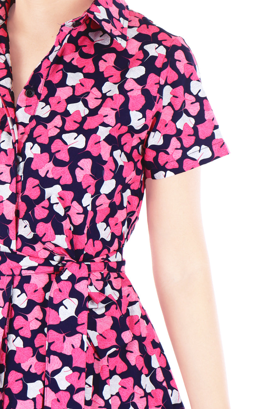 Bursting in radiant harmony, this amazing shirtdress features gingko leaf prints throughout in pretty shades of pink and white amidst a navy-coloured background. You’ll love how effortless this retro-chic shirtdress is for dressing up or down in sandals or a pair of heels for work!