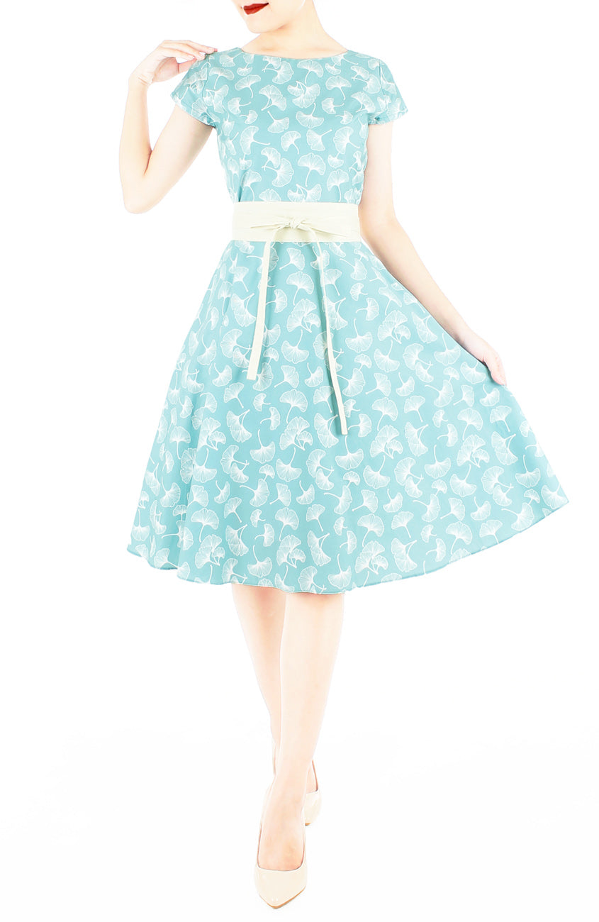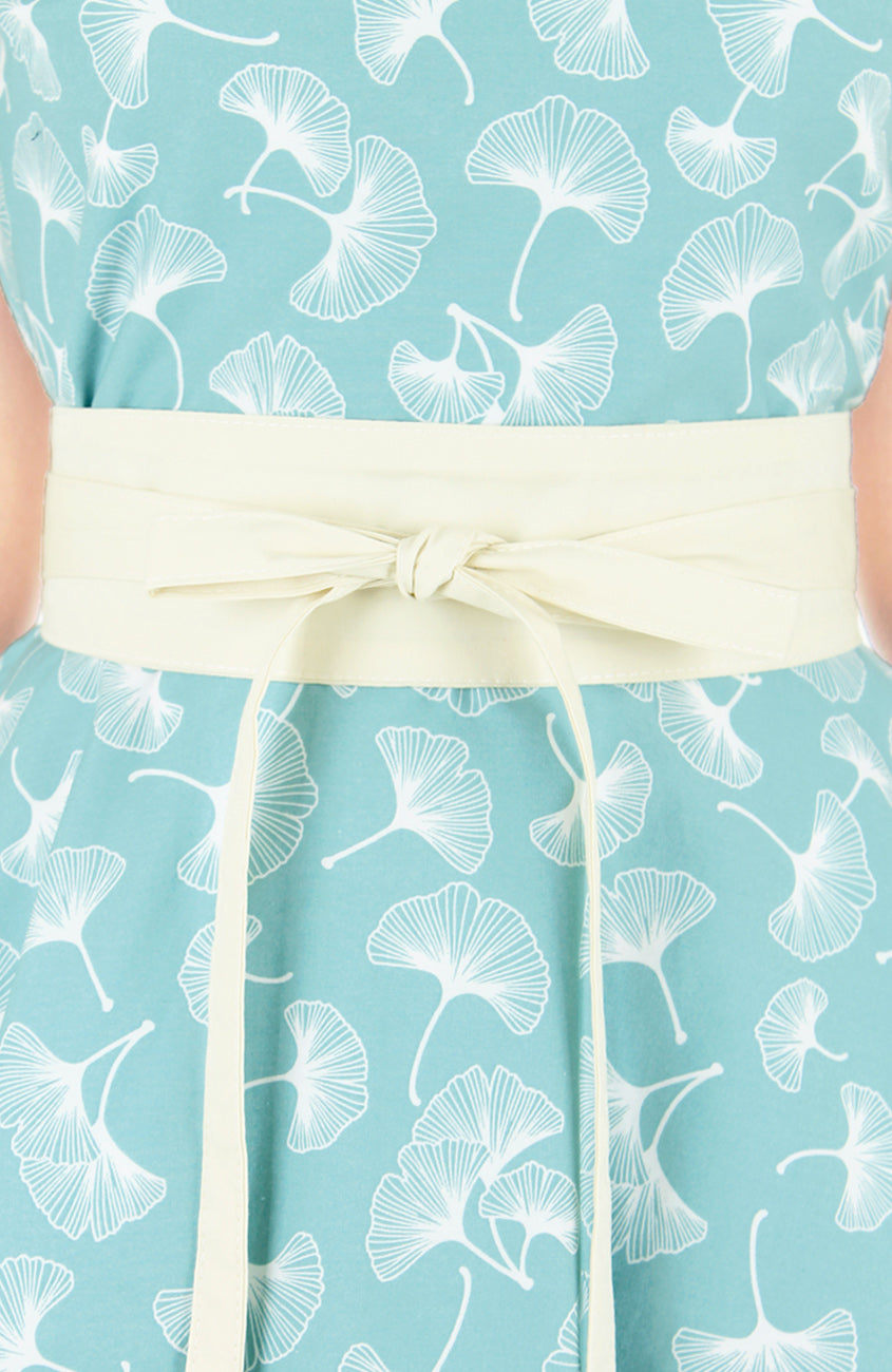 This contemporary obi belt in a versatile off white shade, can be tied as loose or as tight as you’d like, for a perfectly snug, waist-cinching fit. It totally adds styling points to dresses or loose tops! Plus, it still fits you if your weight fluctuates. Featuring a slit on one side of the central panel, so it will sit neatly at the back. Styled here with our Graceful Gingko Leaf Flare Tea Dress - Mint, and possibly, many others too!