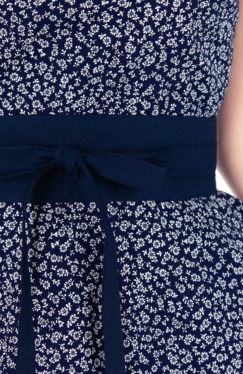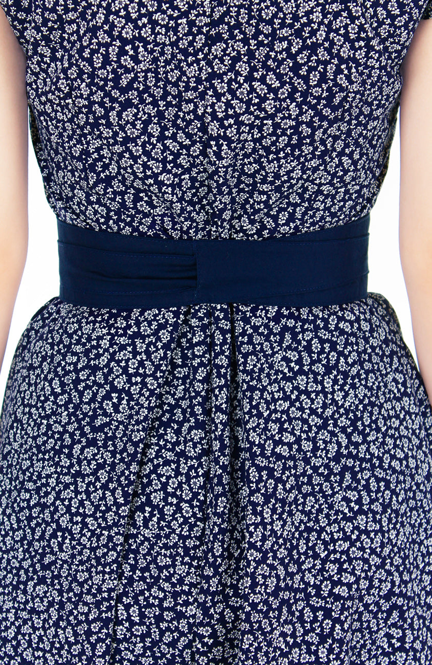 This contemporary obi belt in a classic midnight blue colour, can be tied as loose or as tight as you’d like, for a perfectly snug, waist-cinching fit. It totally adds styling points to dresses or loose tops! Plus, it still fits you if your weight fluctuates. Featuring a slit on one side of the central panel, so it will sit neatly at the back. Styled here with our Blissful Baby Blooms Flare Tea Dress, and possibly, many others too!