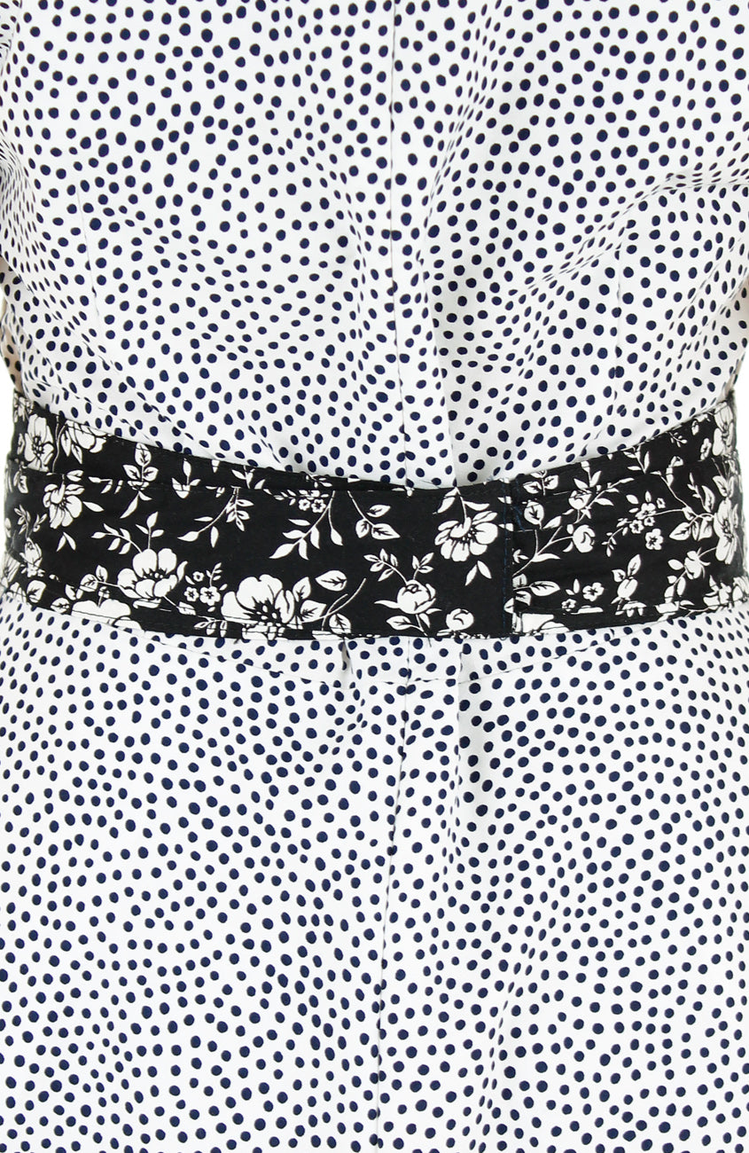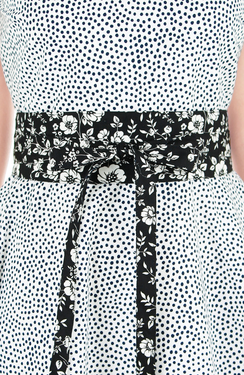 This contemporary obi belt in a versatile black-and-white poppy print, can be tied as loose or as tight as you’d like, for a perfectly snug, waist-cinching fit. It totally adds styling points to dresses or loose tops! Plus, it still fits you if your weight fluctuates. Featuring a slit on one side of the central panel, so it will sit neatly at the back. Styled here with our Sartorial Spots Flare Tea Dress in White, and possibly, many others too!