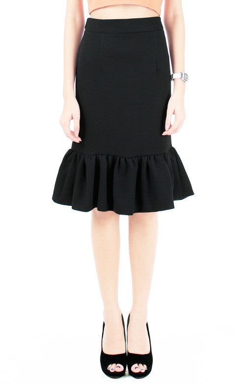As if anyone needed further proof that you’re a first-rate fashionista – this textured trumpet skirt is a fab example! From its flared hem and hidden back zip, this trumpet skirt adds an updated touch to any classic looks. Matching crop top available. Made from polyester. Slightly stretchable.