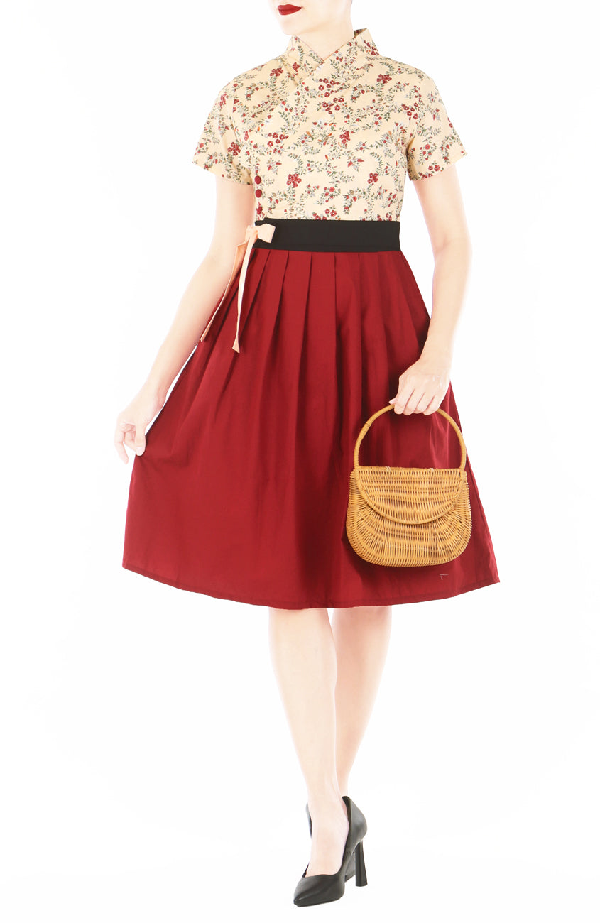 Pleated, flare skirt with inner polyester lining