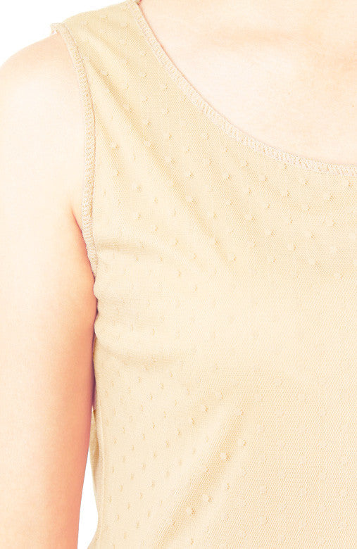 You percolate with earthy charisma in this bohemian-inspired midi dress! Wooden accessories harmonize with this dress, so adorn this light brown dress with polka dot overlay with a long necklace and brown tote. Other details include: elasticated back waist band, one-sided ruches on waist, and white lace trimming. Made from polyester. Slightly sheer, recommended to wear with skin-coloured undergarment.