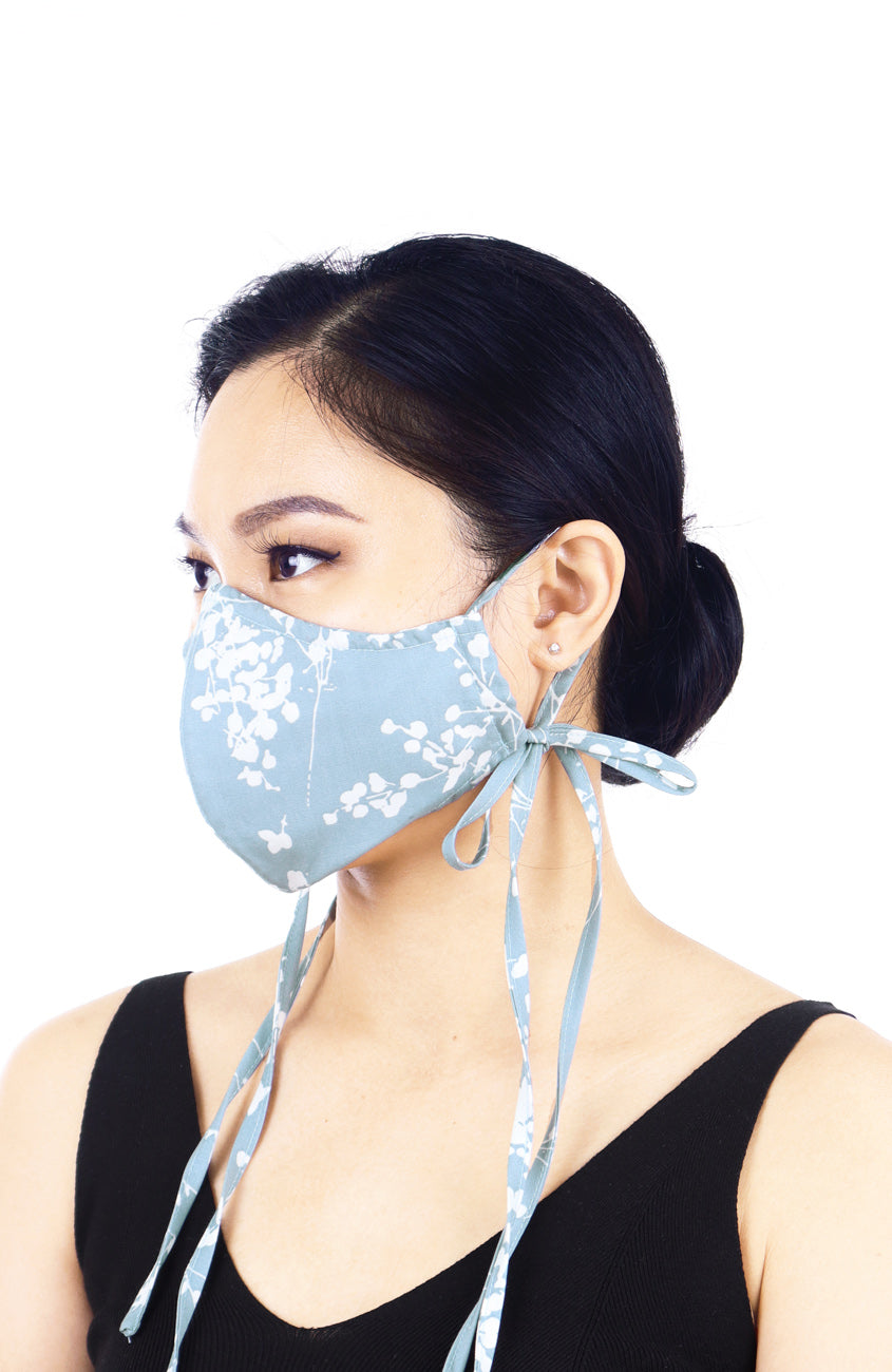 Japanese Plum Blossoms Pure Cotton Face Mask with Head Ties - Sky Blue