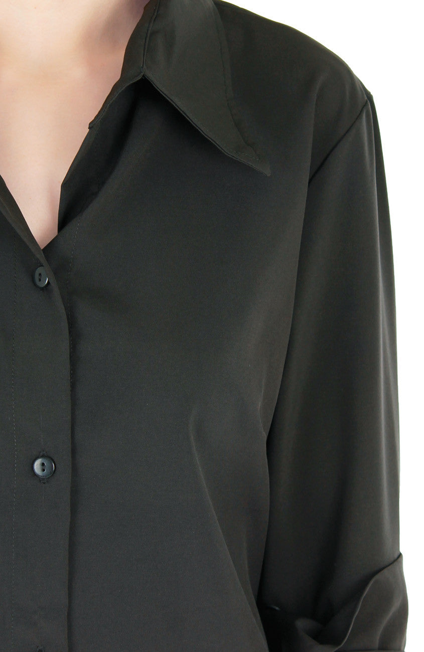 In the relaxed style of this black long sleeved boyfriend shirt, an adventure in a new city feels like home. A soft, cotton-poly blend fabric, and an overall casual coolness make this shirt perfect for such idyllic travels.