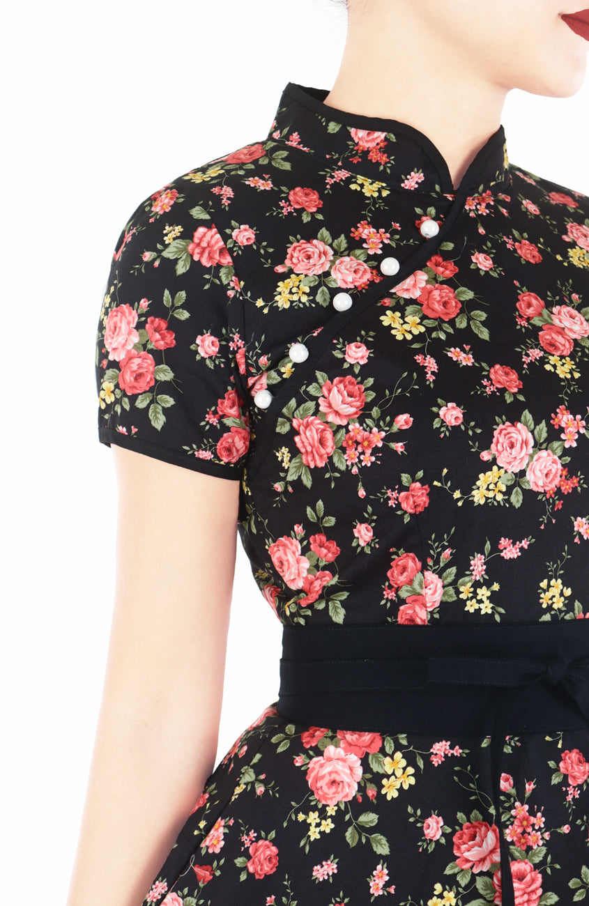 This Lunar New Year will have you feeling regal and elegant in the Antique Rose Cheongsam, a Whitesoot exclusive. With its graceful length and silhouette, this piece exudes an air of refined sophistication that captures the essence of bygone eras. Adorned with beautiful faux pearl buttons, each delicately placed, this cheongsam becomes the perfect choice for CNY night soirées —one that promises an ensemble as timeless as it is unforgettable. Style it with our Noir Black obi belt to take your cheongsam look a notch up! Obi belts are sold separately.
