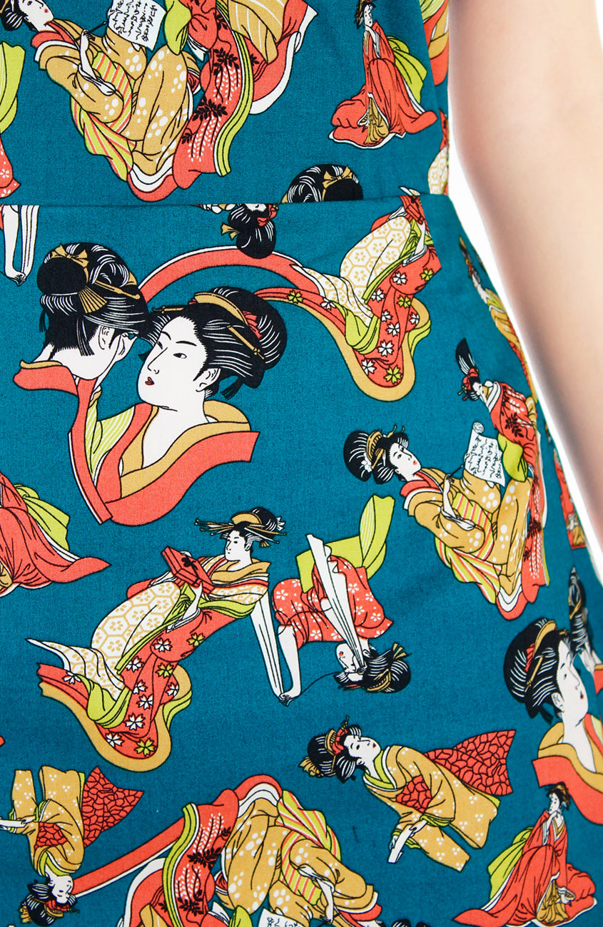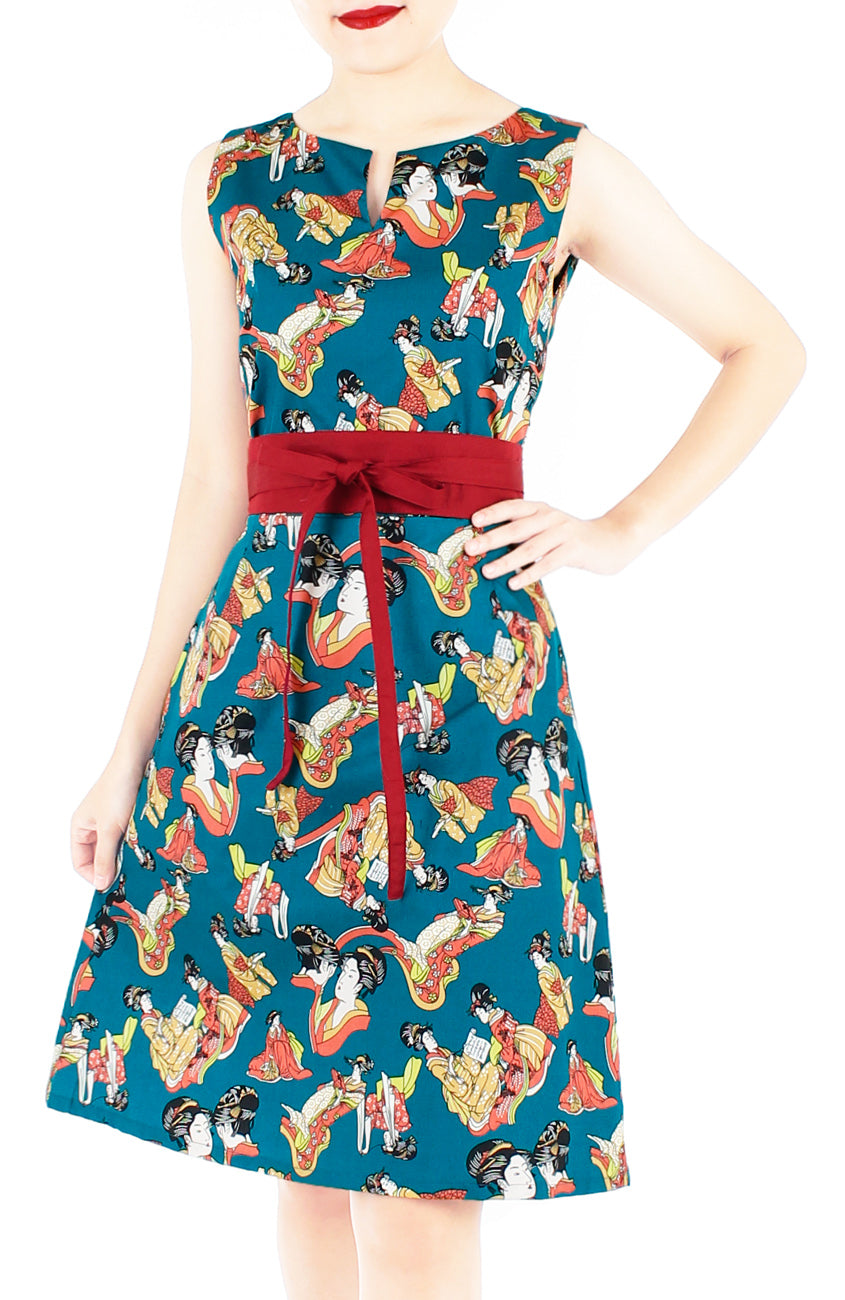 There’s a fine feeling attributed to finding a look that’s a true keeper – discover the rush with this artistic Japanese geisha printed dress! What’s more, style it with our Contemporary Obi Belt in Imperial Burgundy to elevate your look. Details include: Double layered top, A-line skirt with inner polyester lining, side pockets, notched neckline and a concealed back zip. Made from cotton – breathable & machine washable (no colour bleed). Hand wash for initial wash.