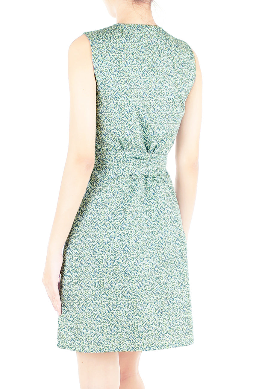 In between pondering how you found this tiny leaves of teal blue and lime green dress, your fellow fete goers will be suspended in awe of such a charming look! A flattering A-line cut with a notched neckline and matching belt will all contribute to the ethereal look of this dress. Details include: Button down design, belt loops and dress is entirely lined. Also comes with a matching self-tie, detachable waist sash. Made from cotton.