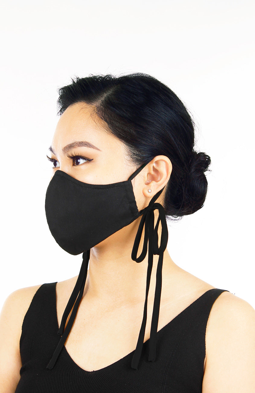 Essential Pure Cotton Face Mask with Head Ties - Noir Black