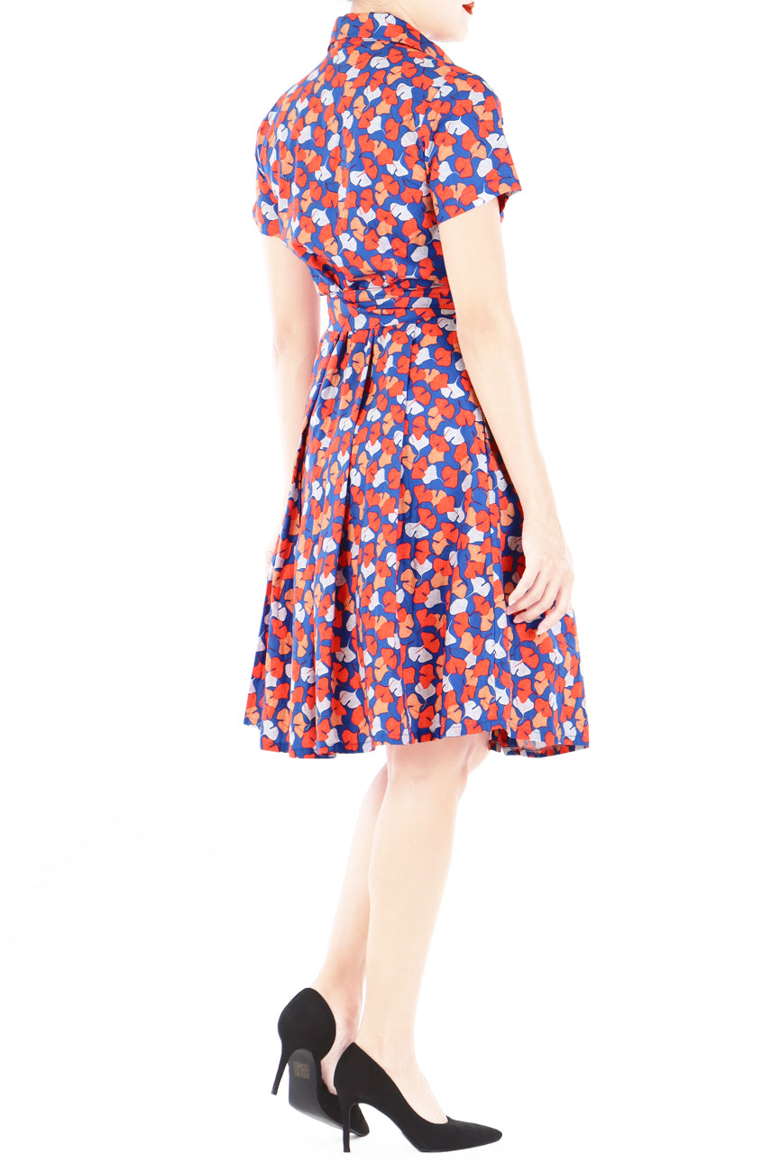 Bursting in radiant harmony, this amazing shirtdress features gingko leaf prints throughout in pretty shades of orange and white amidst an azure blue-coloured background. You’ll love how effortless this retro-chic shirtdress is for dressing up or down in sandals or a pair of heels for work!