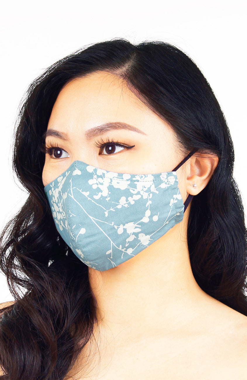 Japanese Plum Blossoms Pure Cotton Face Mask - Sky Blue