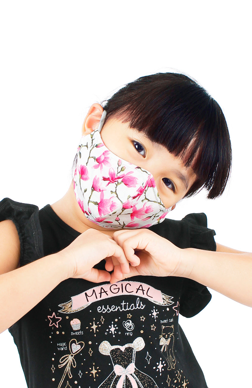 Home KIDS Falling Cherry Blossoms Pure Cotton Face Mask - White