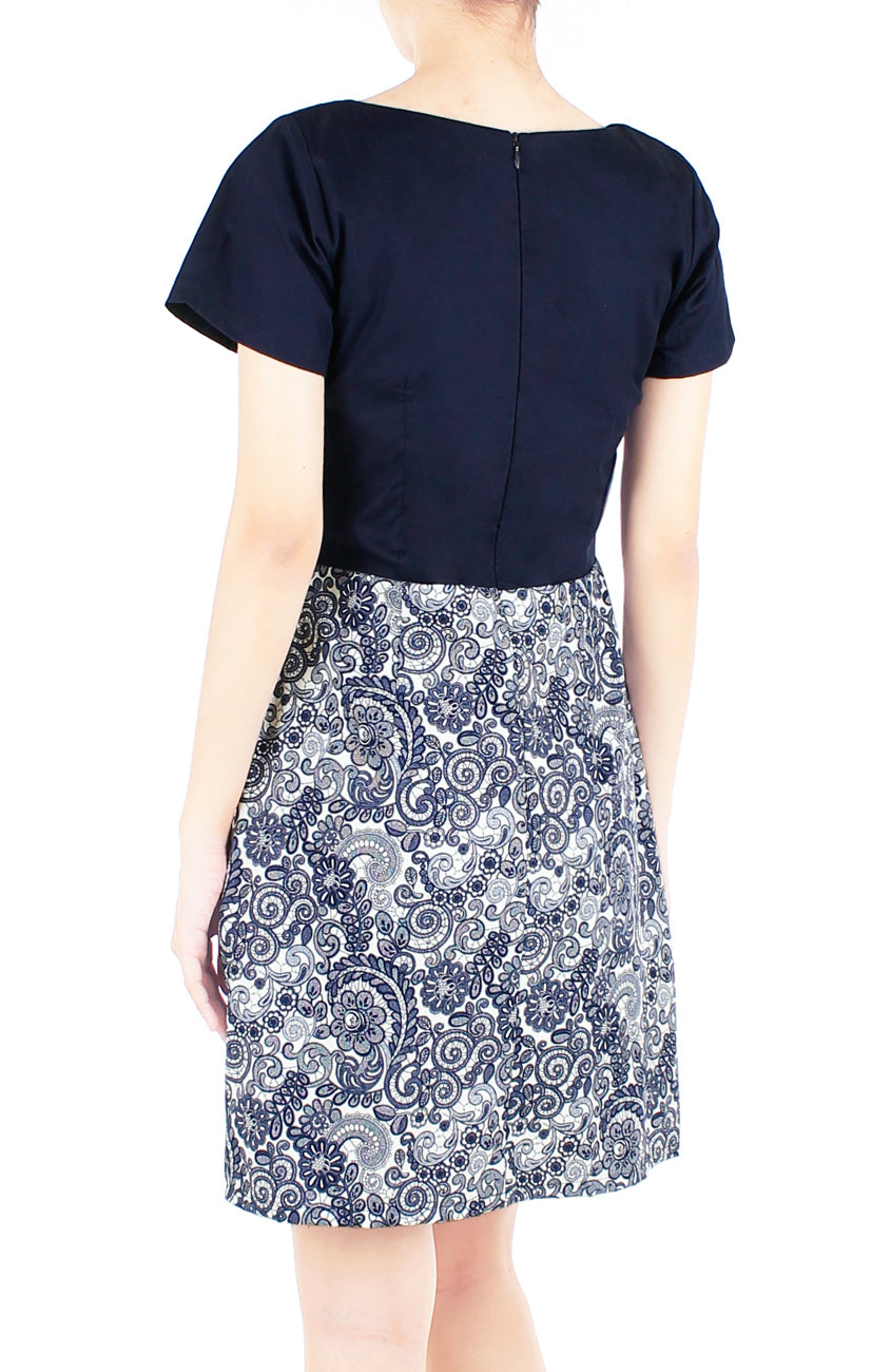 There’s nothing better than compliments from sunrise to sunset, so don this ladylike dress with a skirt in midnight blue-coloured lace print, and experience the magic for yourself! This short sleeved beauty features an adorable notched neckline and it comes with hidden side pockets too! Sweet! Details include: Side pockets, double layered top, straight cut skirt with lining and a concealed back zip. Made from cotton.
