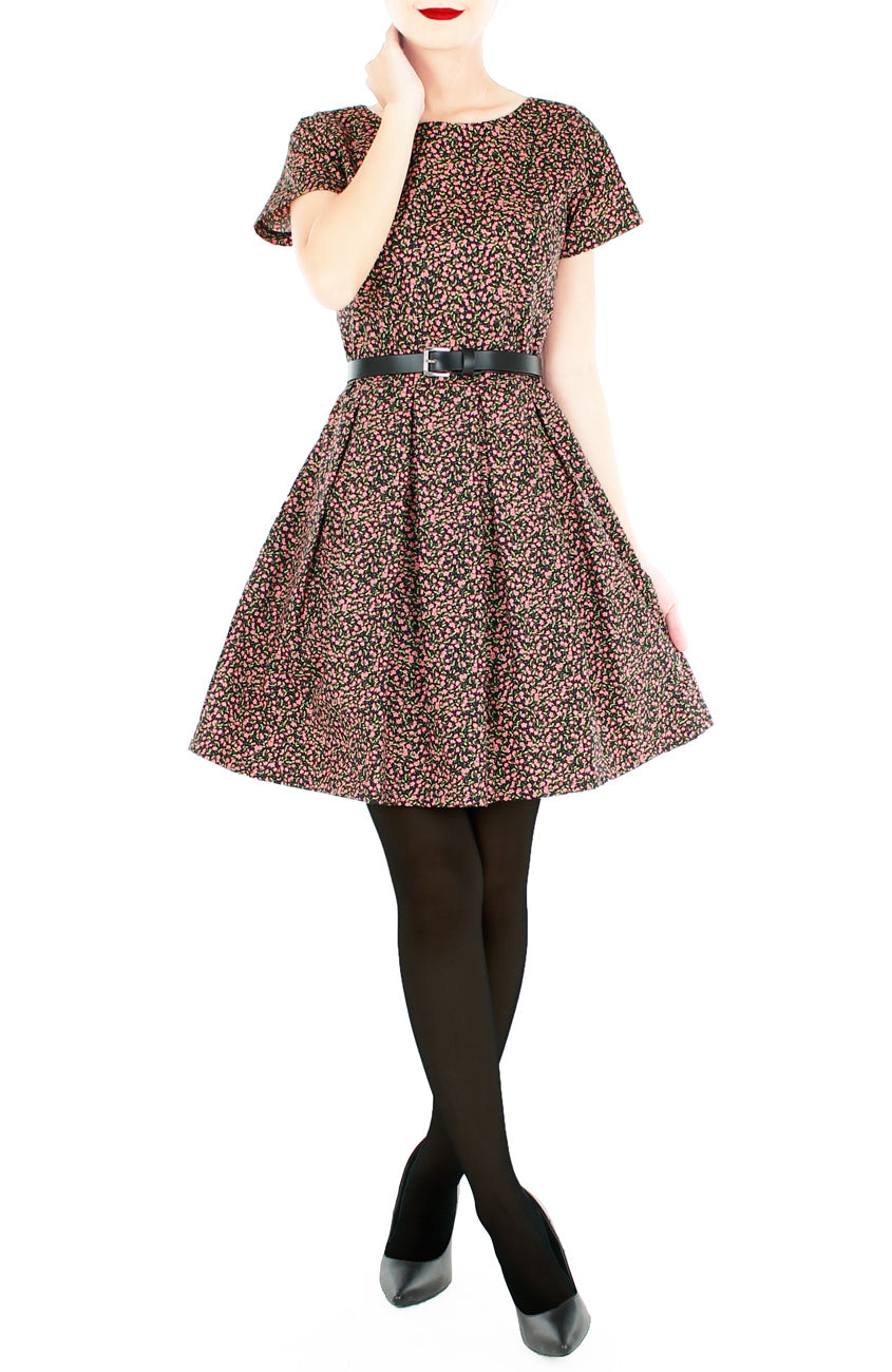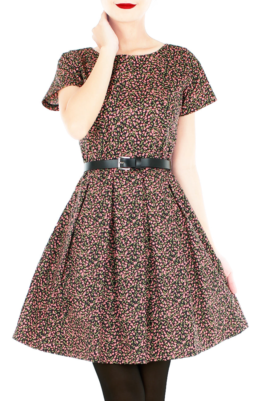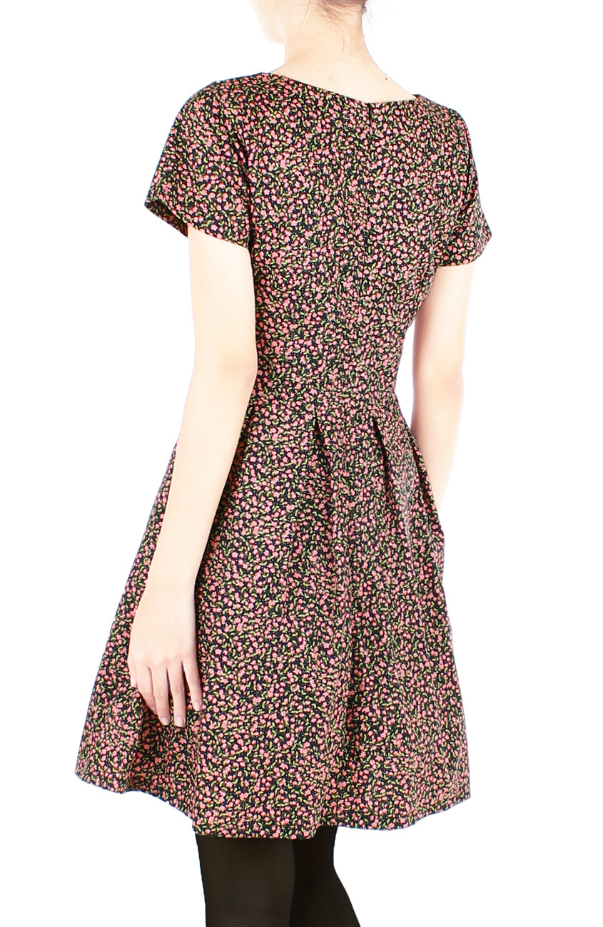 Relishing times spent enjoying a picnic under beautiful Sakura trees is just as enjoyable as planning the occasion for which you’ll wear this beauty again. This pocketed darling is printed with tiny blush pink Sakura blooms on a black background with tiny spots, making this piece an absolute dream! Details include: Double layered top, pleated flare skirt with inner lining, side pockets and a concealed back zipper. Made from cotton.