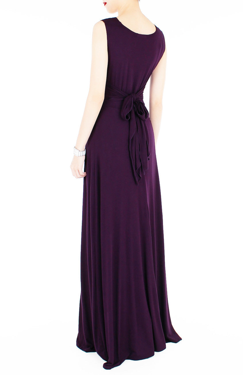 Naturally, you’re headed for romance and adventure in this gorgeous mulberry purple maxi dress! From its V-neckline, knotted front detailing, flattering empire line cut and A-line skirt, this dress is made for wedding dinners, glamourous date nights, romantic getaways and much, much more! Other details include: Self-tie waist sash and inner polyester lining (lining is split at the sides to accommodate larger hips). Made from cotton rayon blend. Stretchable.