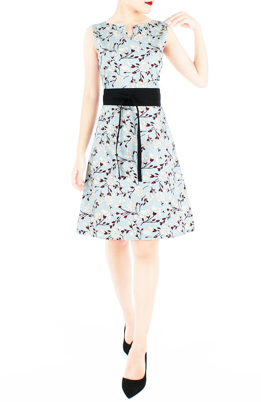 Feel less overwhelmed with the help of this serene and calming lily prints of this dusty blue-coloured dress! Let it encourage you to practice self-care and empower you to find balance, so you can feel your best every day. Styled here with our Contemporary Obi Belt in Noir Black. Details include: Notched neckline, double layered top, A-line skirt with inner lining, secret side pockets and a concealed back zip. Made from cotton – breathable & machine washable (no colour bleed). Hand wash for initial wash.