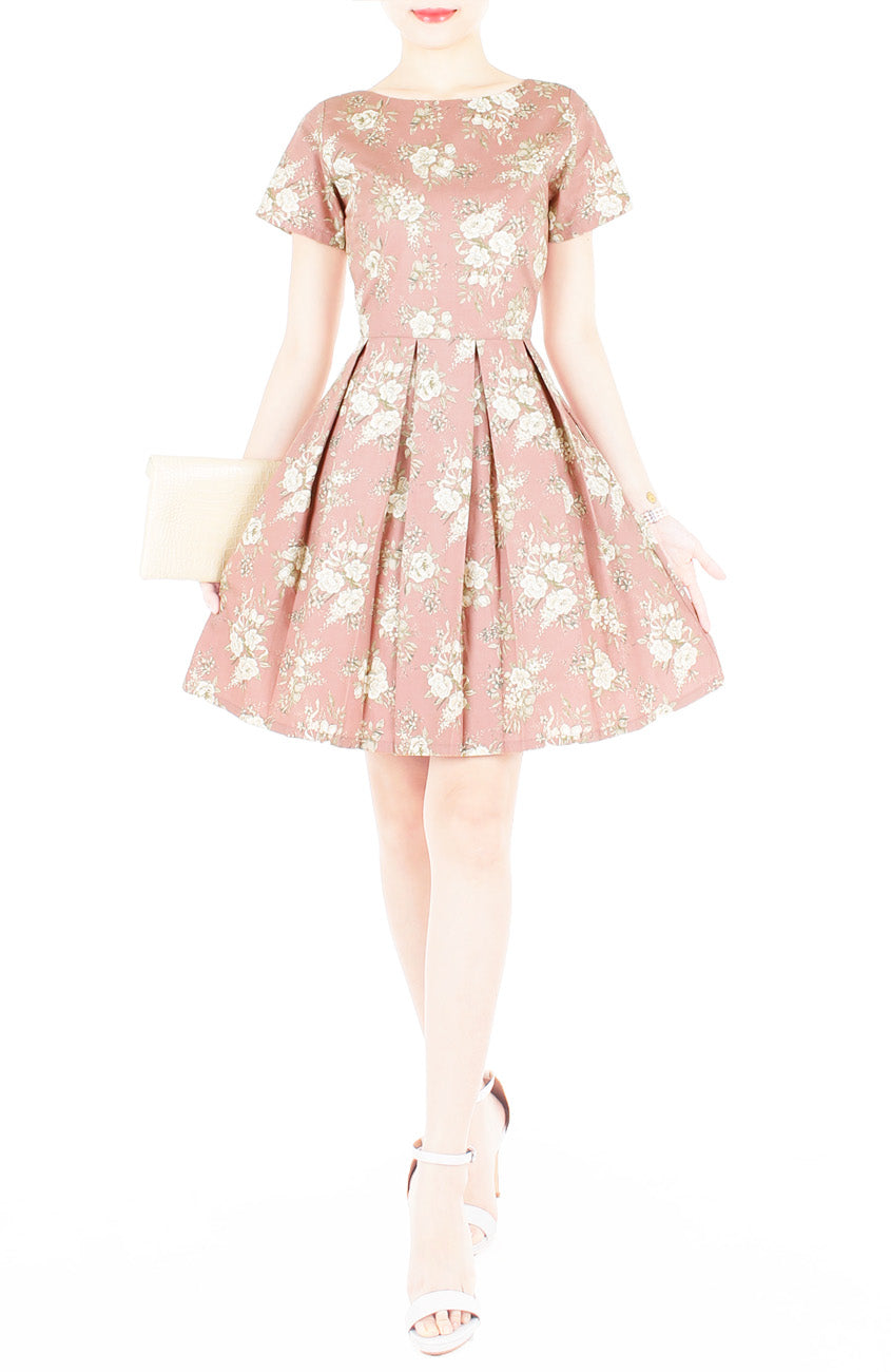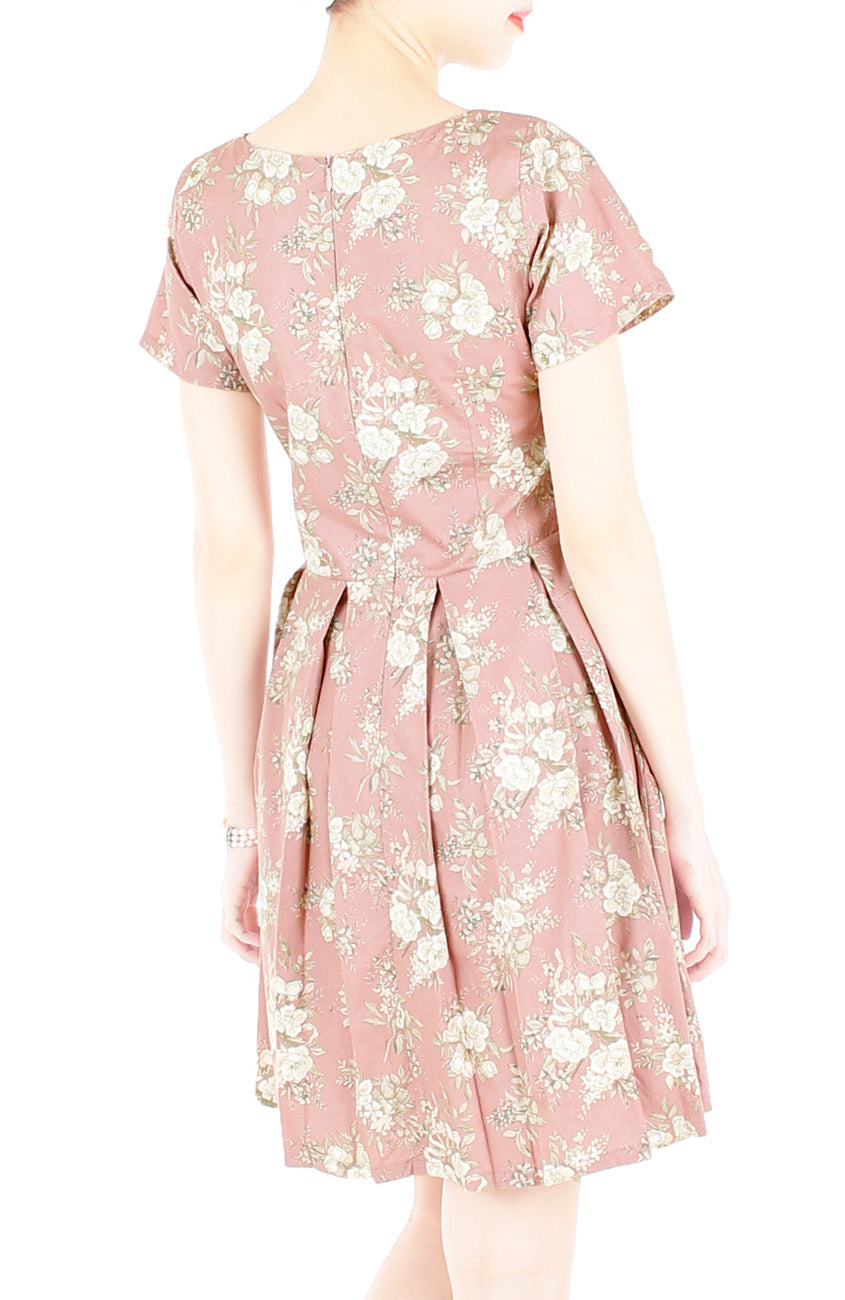 An unforgettable occasion calls for an ensemble just as memorable, and every inch of this dress is up to the task! It’s pale white vintage rose prints on a rosewood pink background and fit-and-flare detail makes your presence nothing but noteworthy! Other details include: Double layered top, flare skirt with inner lining, short sleeves, side pockets and a hidden back zip. Made from cotton.